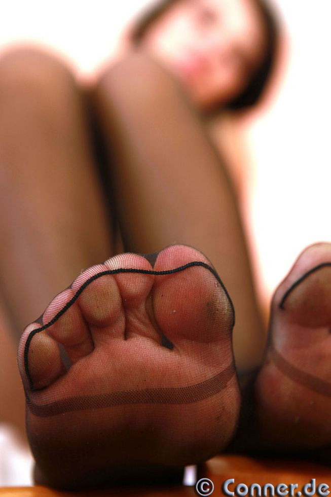 Slim brunette Lucia putting glass plugin into her pussy under her black nylon tights