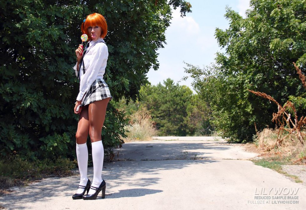 Sultry schoolgirl in pantyhose learns hard cock outdoors