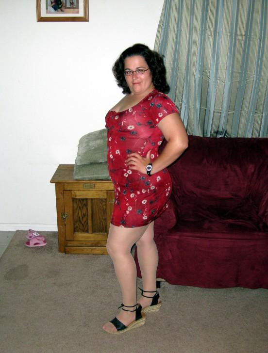 Little chubby wife spreads her legs and shows off pantyhose crotch