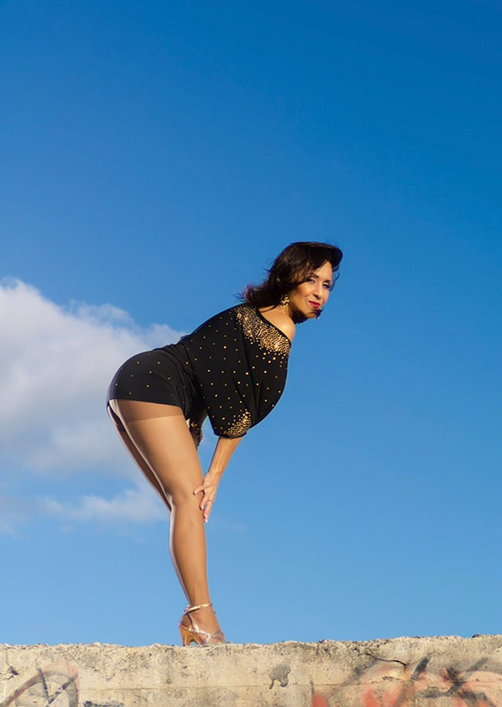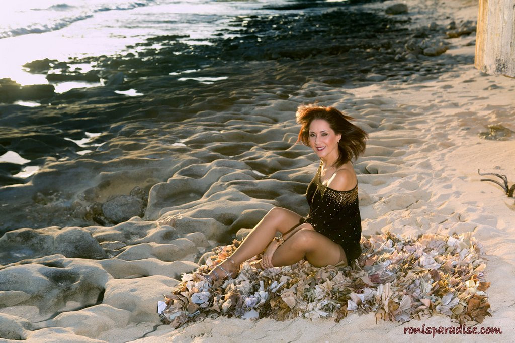 A photo shoot with gorgeous aged lady Rony is posing on the sea beach